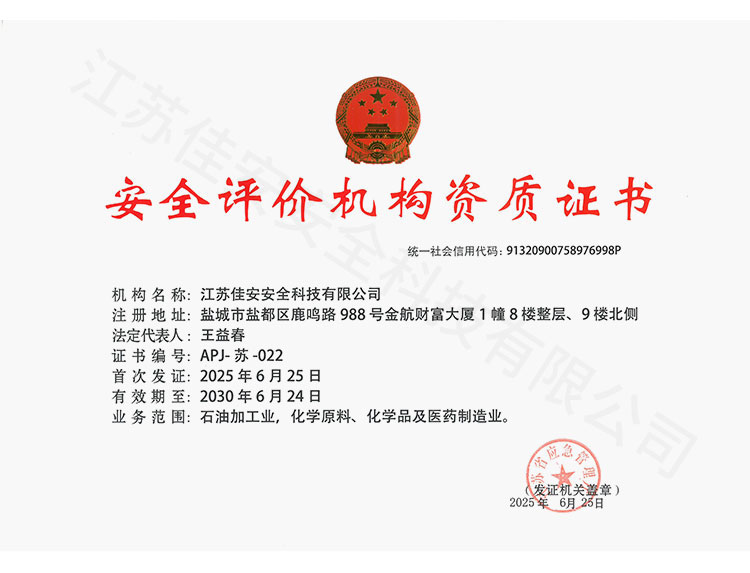 • 江蘇富比亞化學品有限公司變更專項安全評價報告